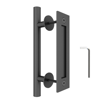 12-Inch Modern Preto Ajustável Roller Barn Maçaneta Puxar e Flush Hardware Set Guia Janela Celeiro deslizante com Black Roller