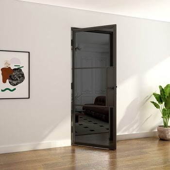 Interior Hinged Doors with Black Transparent Glass TKM-YY12 Interior Pre-hung Steel Frame Glass Door