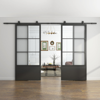 Современная Высококачественная двойная дверь 6,6 фута, черная деревянная раздвижная дверь сарая, комплект оборудования, Заводская индивидуальная распродажа винтов