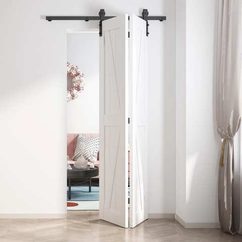 ホワイトMDFコンポジットバイフォールドスライド式納屋ドアハードウェアキット36 in X 84パネル素朴なデザイン防水無垢材