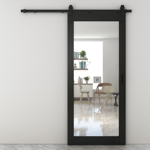 モダンデザイン透明ガラス黒鉄骨フレーム内装納屋ドアハードウェアキット仕上げ仕切りドアハンドル装飾インテリア