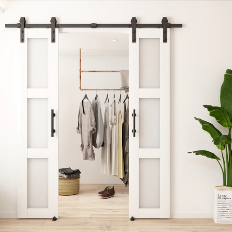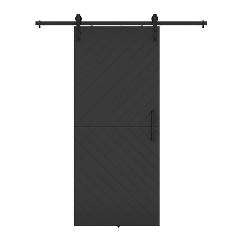 Sistema de hardware de puerta corredera negra con puerta de granero de madera corredera de panel MDF, dormitorio. Puerta de armario, puerta de armario