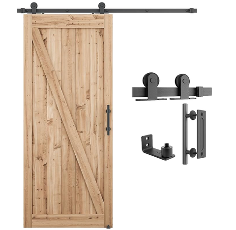 Puerta de Granero Tipo Z con Montaje Superior de 6 Pies Juego Completo de Herrajes para Puerta Corredera de Granero, Incluye Manija de Puerta y Guía de Piso Ajustable