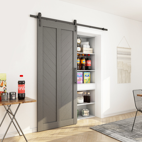 Kit completo de puerta de Granero interior con diseño de Chevron de 84 pulgadas x 36 pulgadas y mecanismo de rodillo ultrasilencioso, el kit de puerta interior de granero es de